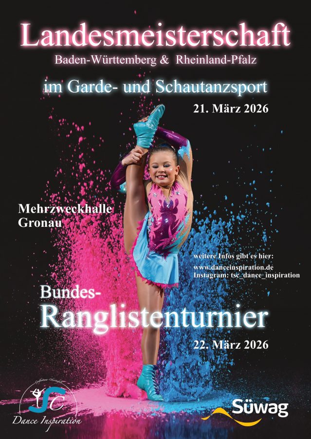 Am 21. und 22. März 2026 wird Gronau zum Zentrum des Garde- und Schautanzsports. Der TSC Dance Inspiration richtet in der Mehrzweckhalle Gronau ein hochkarätiges Turnierwochenende aus, das Tanzsportbegeisterte aus Baden-Württemberg und Rheinland-Pfalz zusammenbringt. Samstag, 21. März 2026 Landesmeisterschaft Baden-Württemberg & Rheinland-Pfalz Am Samstag kämpfen die besten Tänzerinnen und Tänzer der beiden Bundesländer um die […]